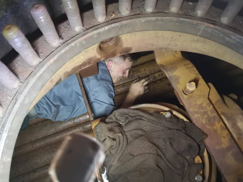 Da am kommenden Wochenende ja unsere Dampfloks zur Probe angeheizt werden sollen, musste noch einiges vorbereitet werden. Die meiste Arbeit erforderte unsere Dampflok 50 3570, bei der gerade rechtzeitig die Kesselrevision beendet wurde. In deren Verlauf wurden einige Kesselrohre ersetzt und danach konnte eine Wasserdruckprobe erfolgreich durchgeführt werden. Jetzt kann der Dampfregler eingebaut werden. Dazu wurde der sogenannte Dampfdom auf dem Kesselscheitel geöffnet. Das nutzen wir noch einmal für letzte Kontrollen.
